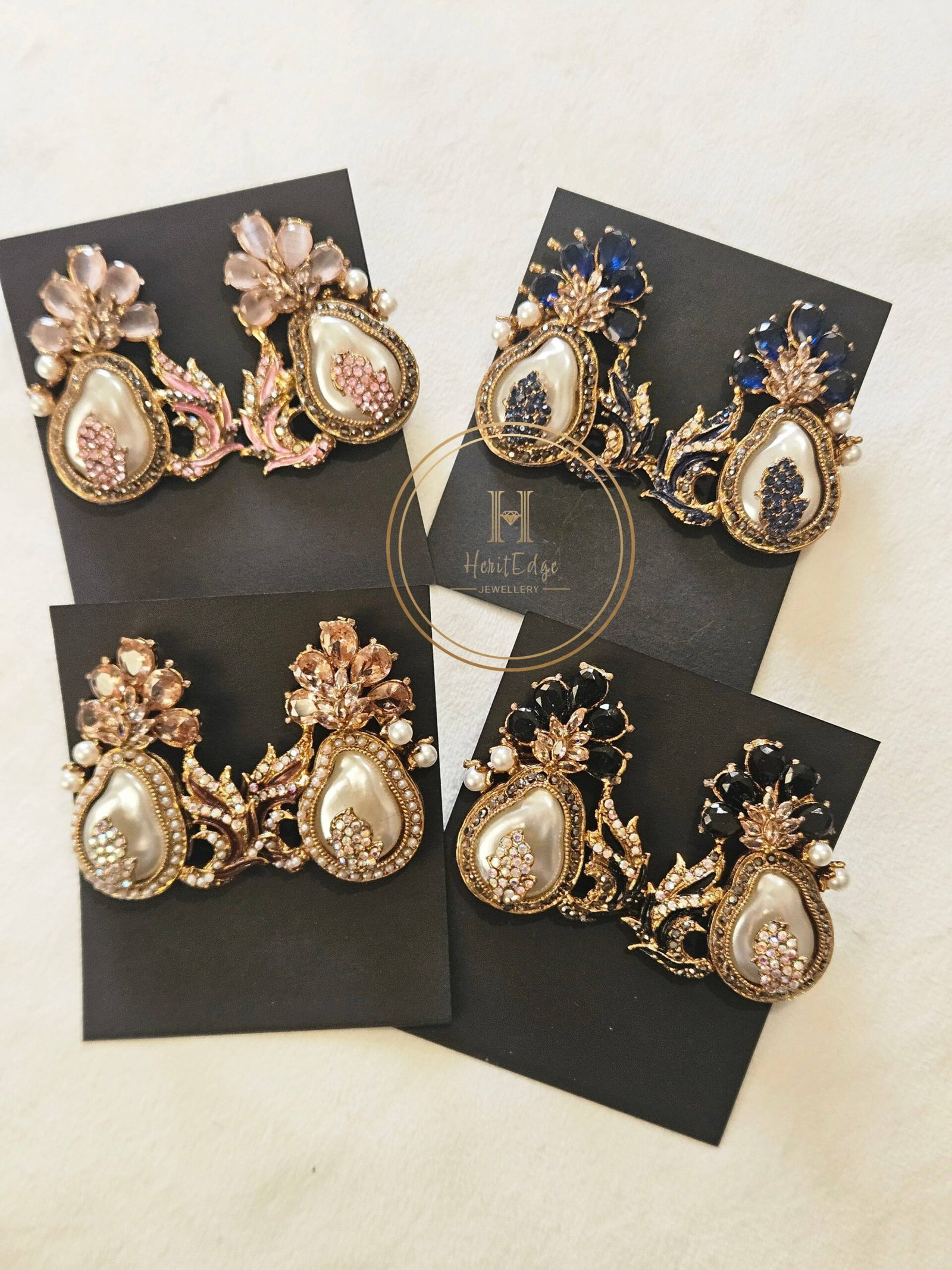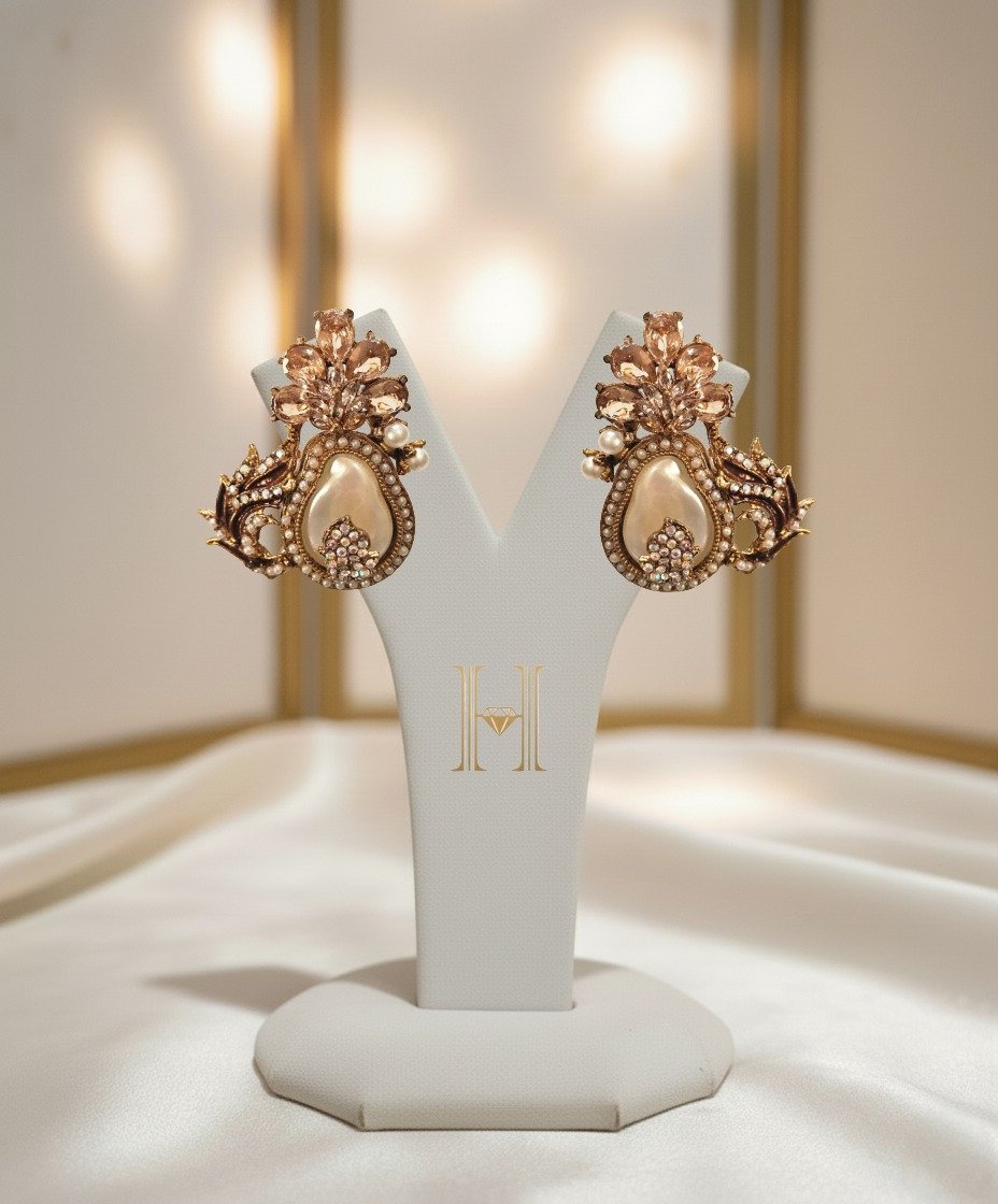 The Golden Dusk earrings are thoughtfully crafted to bring an air of sophistication to your ensemble. Designed for versatility, these exquisite earrings feature graceful leaf detailing paired with luminous pearl accents, embodying elegance and charm. Whether you’re attending a formal event or a casual outing, these earrings will effortlessly enhance your look with their understated shimmer and refined design.