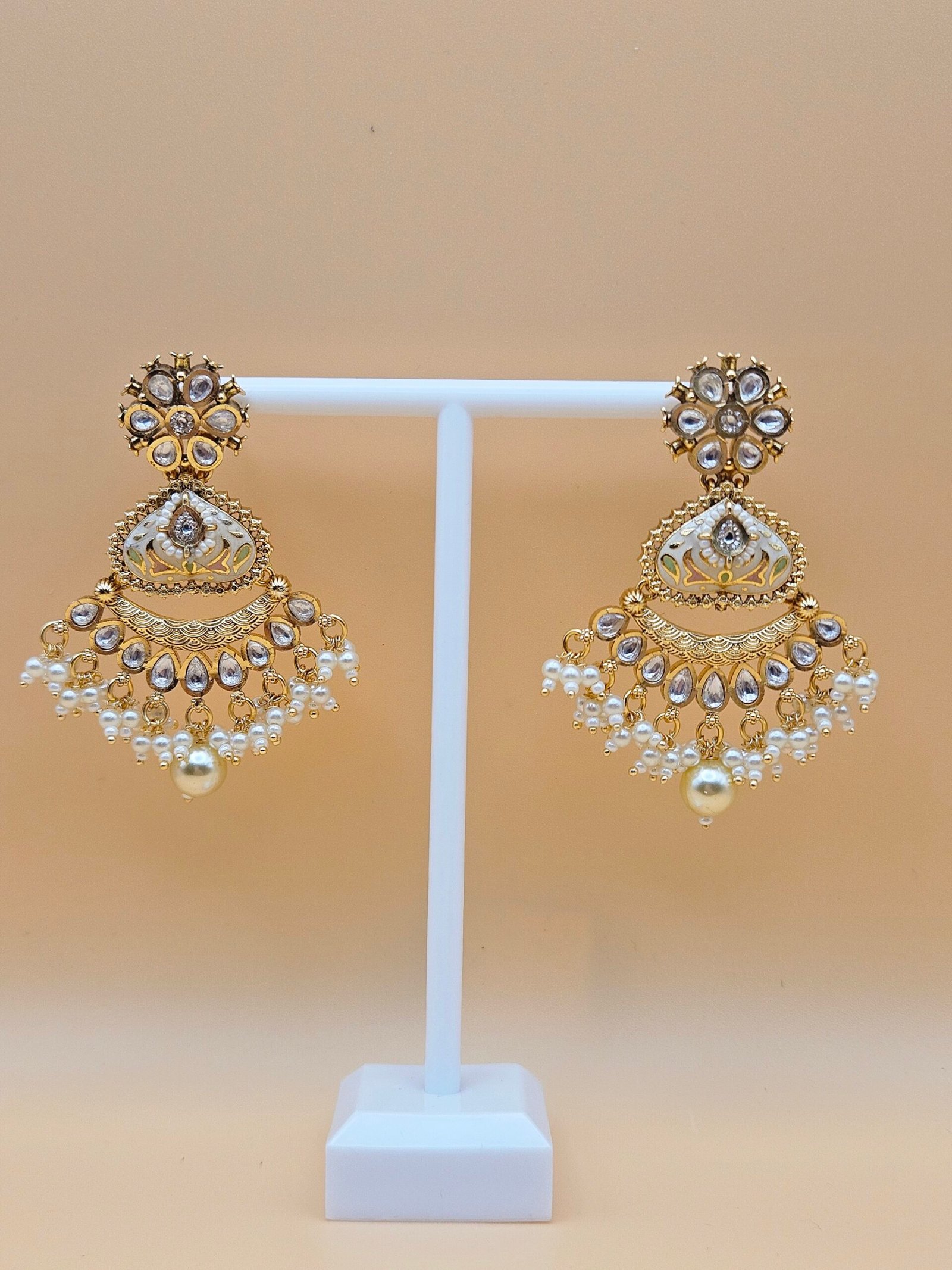 Embrace the essence of blooming spring with Riya Earrings. Featuring intricate floral motifs and delicate Meenakari (enamel) work in soft, seasonal hues. A sophisticated blend of traditional Chandbali aesthetics and classic stud-drop styling.